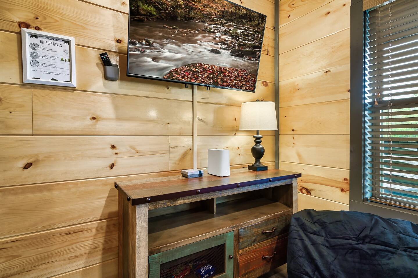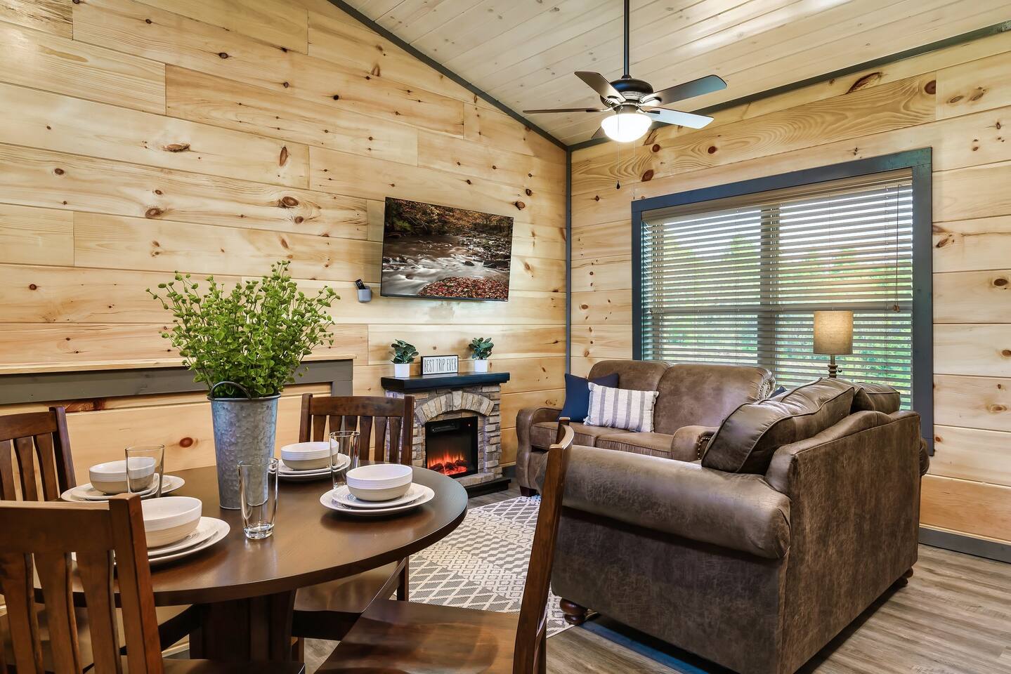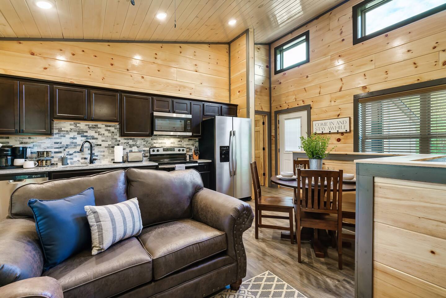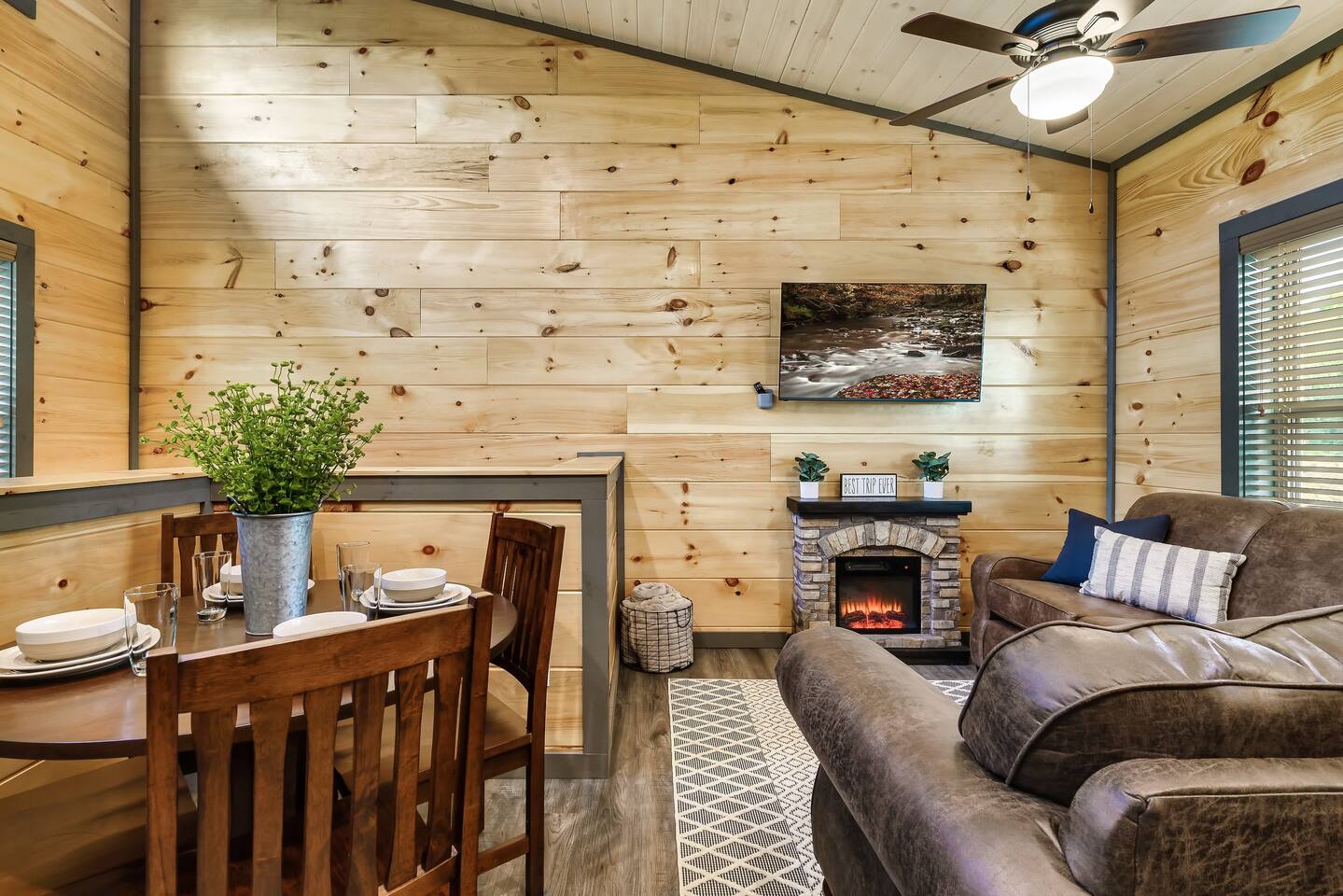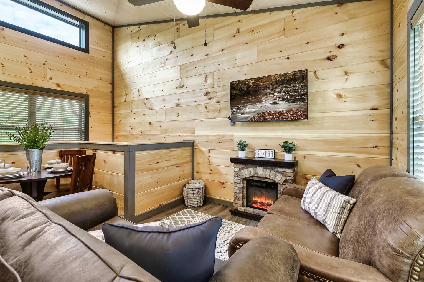 • Comfy seating, 50” Smart TV, open-concept design, and lots of natural light.