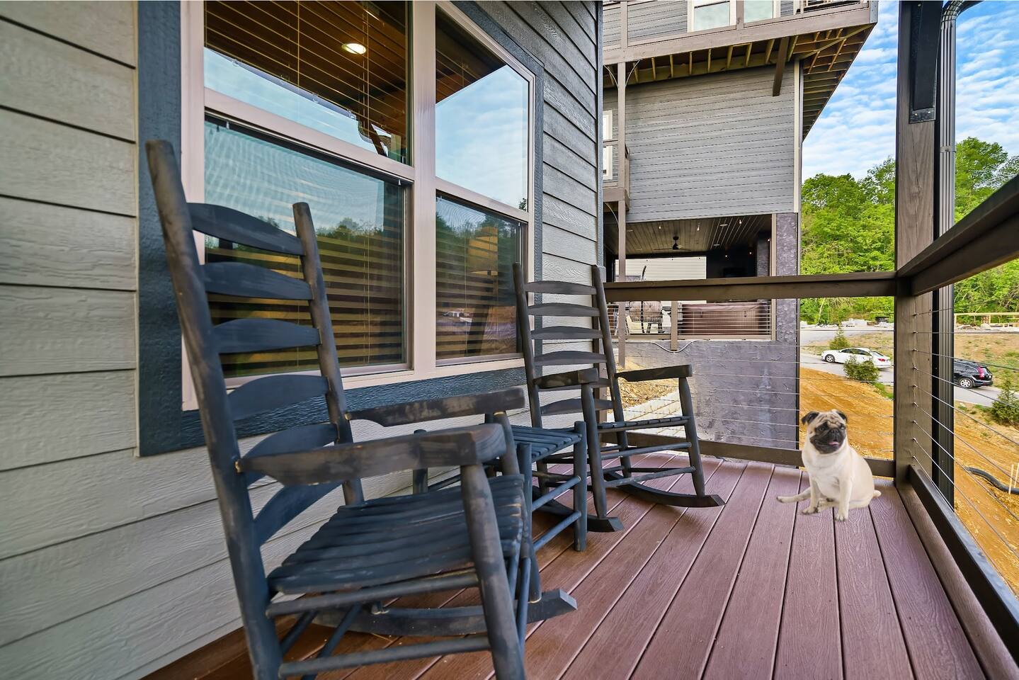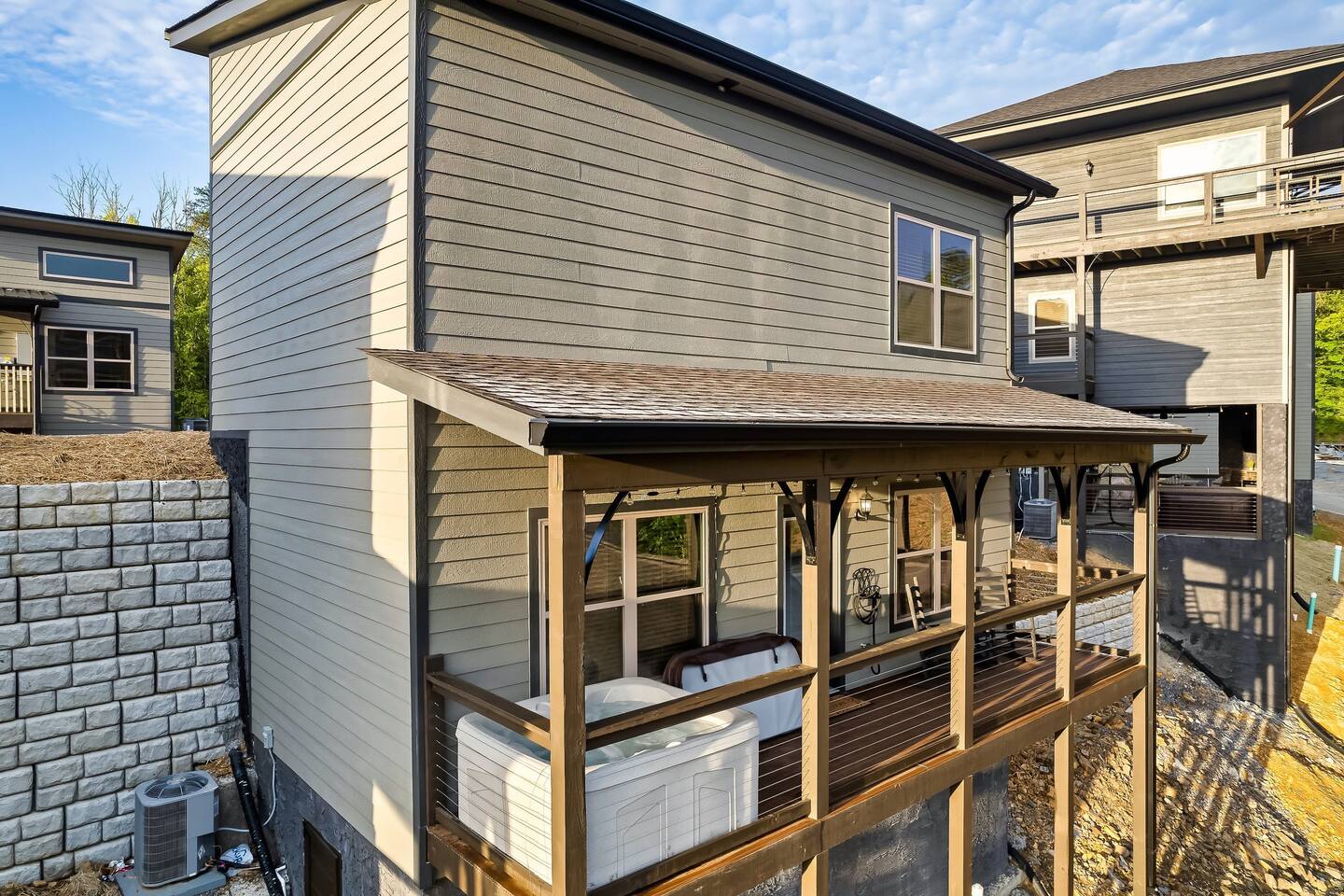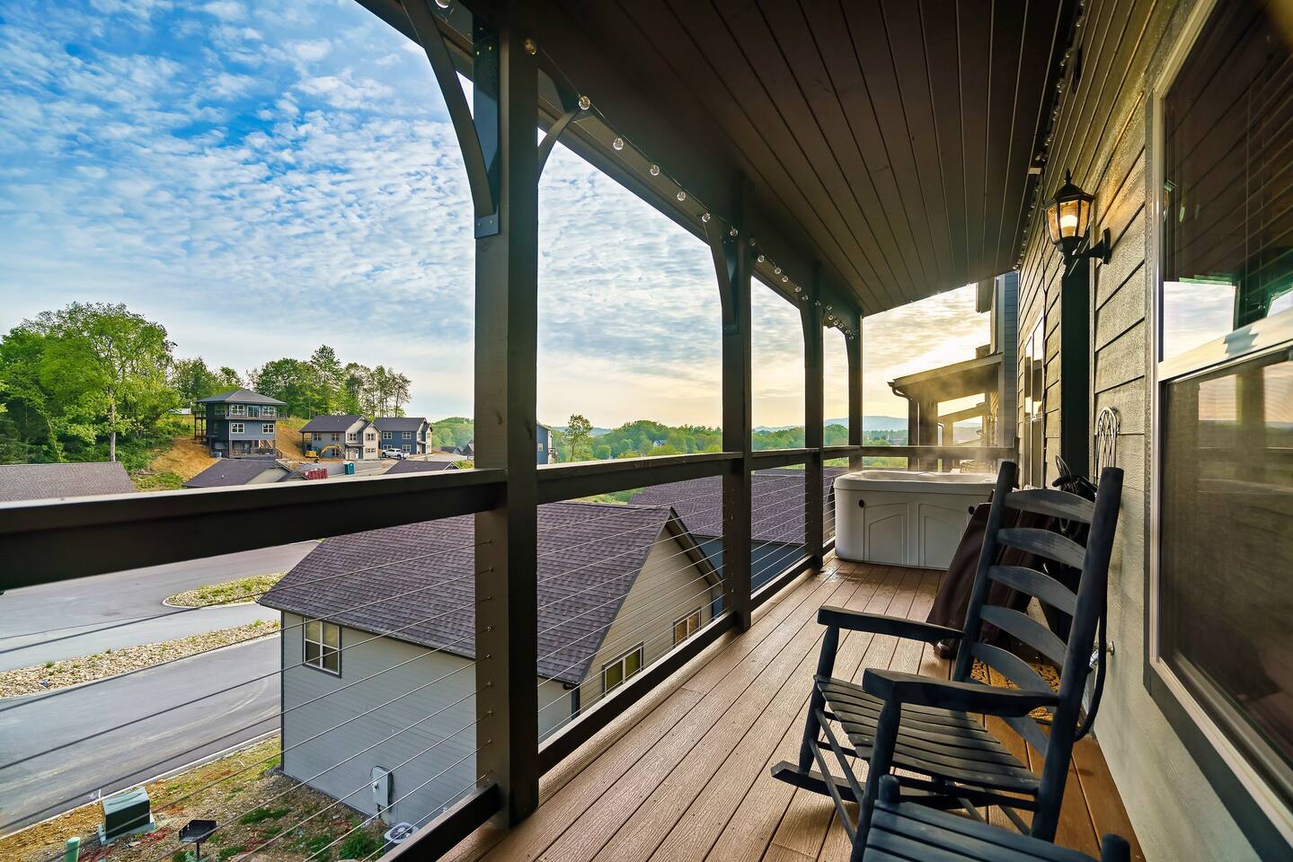 • Back deck with hot tub + partial mountain/community views