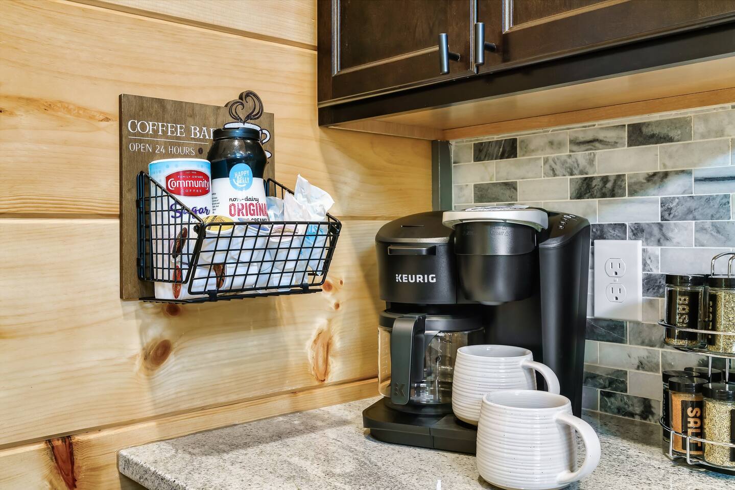 • Fully stocked kitchen + Keurig & drip coffee
